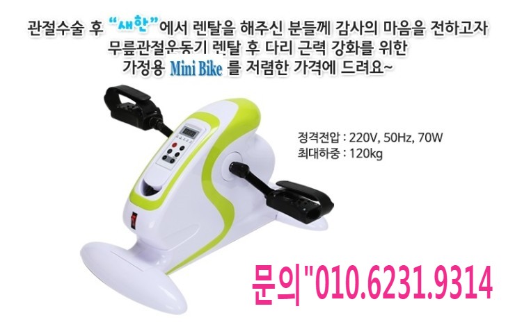 | 가정에서 재활상하지자전거 대여하여 운동하세요 (0) | 2023.01.09 |